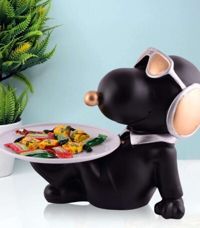 Decorative Black Resin Dog Showpiece for Home Decor, Living Room, Table Decoration for Gifting 8 Inches